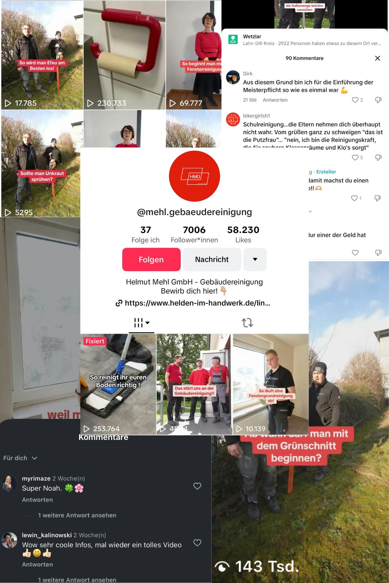 Erfahrungsgemäß wollen Menschen echte Einblicke statt perfekter Werbebotschaften. Deshalb zeigen wir deinen Betrieb so, wie er wirklich ist: mit authentischen Eindrücken aus dem Arbeitsalltag, hilfreichen Tipps und einem Blick hinter die Kulissen. So baust du Vertrauen auf und erreichst deine Zielgruppe auf persönlicher Ebene.