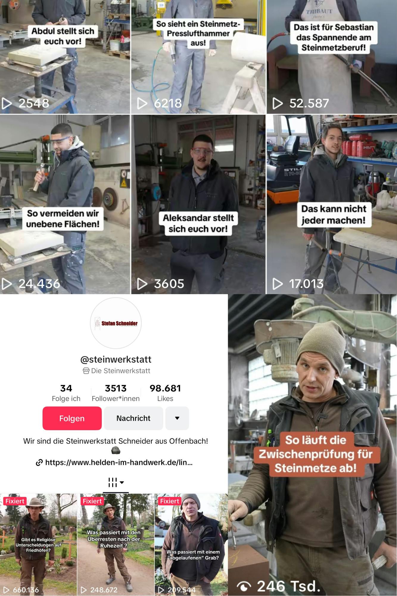Ob beeindruckende Steinmetzarbeiten, kunstvolle Grabmale oder spannende Einblicke in den Arbeitsalltag – als Steinmetz hast du großartige Inhalte für Social Media! Mit unseren professionellen Videos sorgen wir dafür, dass deine Arbeit gesehen wird – von potenziellen Kund:innen und neuen Fachkräften.